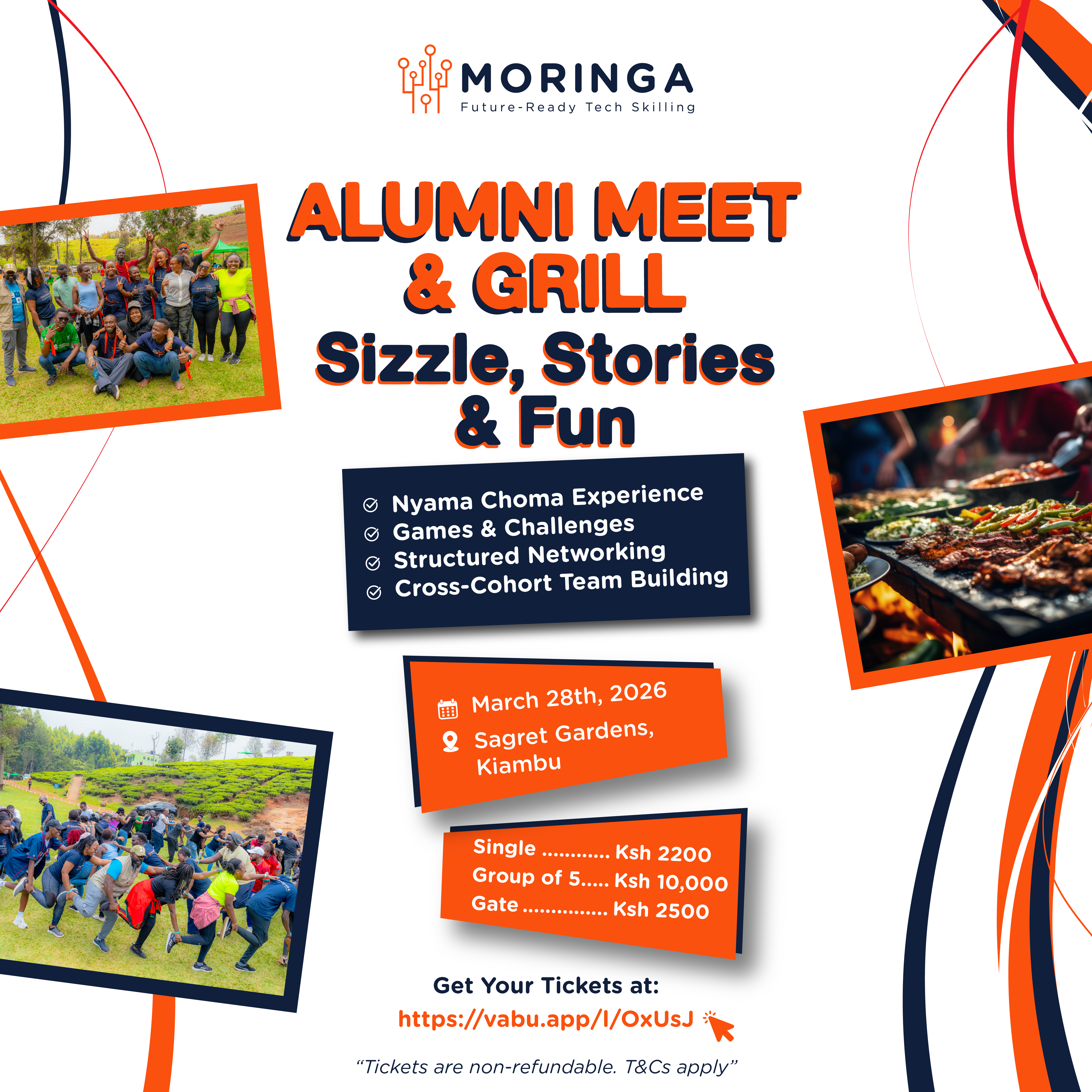 The Alumni MEET & GRILL is a laid-back, feel-good experience for awesome conversations, genuine connections, and pure enjoyment. Think great company, mouth-watering nyama choma, good music, and the kind of atmosphere where memories (re)ignite effortlessly.